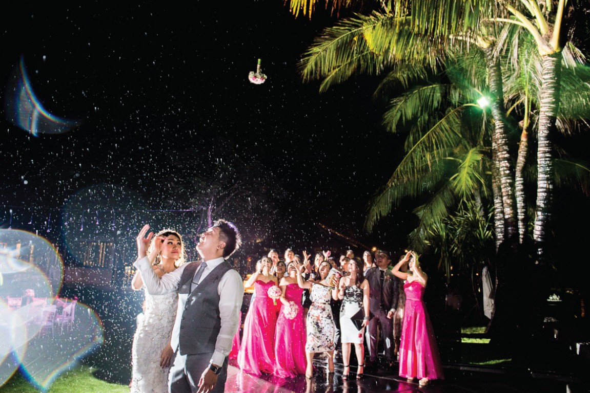 This is what we got from our last wedding in Bali. The weather was not as good as we all had expected, and in this picture, It was raining when they did their first dance together. But never I saw worry and sadness on their face, not even a little. In fact there were only smiles and laughter in all of our frames, much more than what we usually got in a wedding.