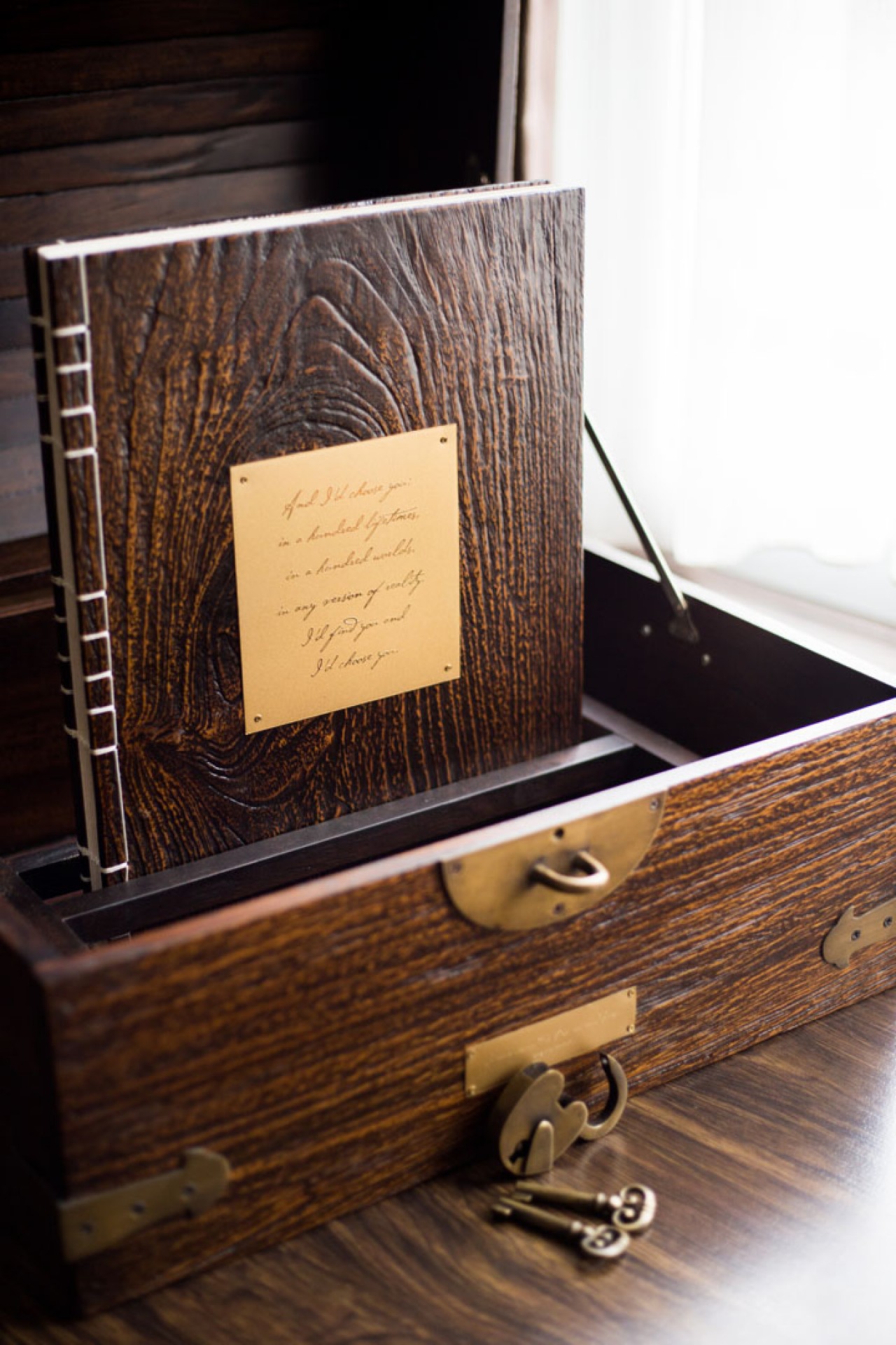 Aside from the wood, Steven also requested for authentic brass accessories for the packaging. We showed them a classic brass locket and key set that we found. They instantly fell in love!