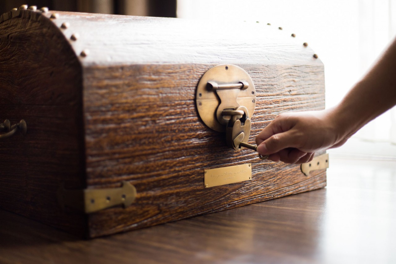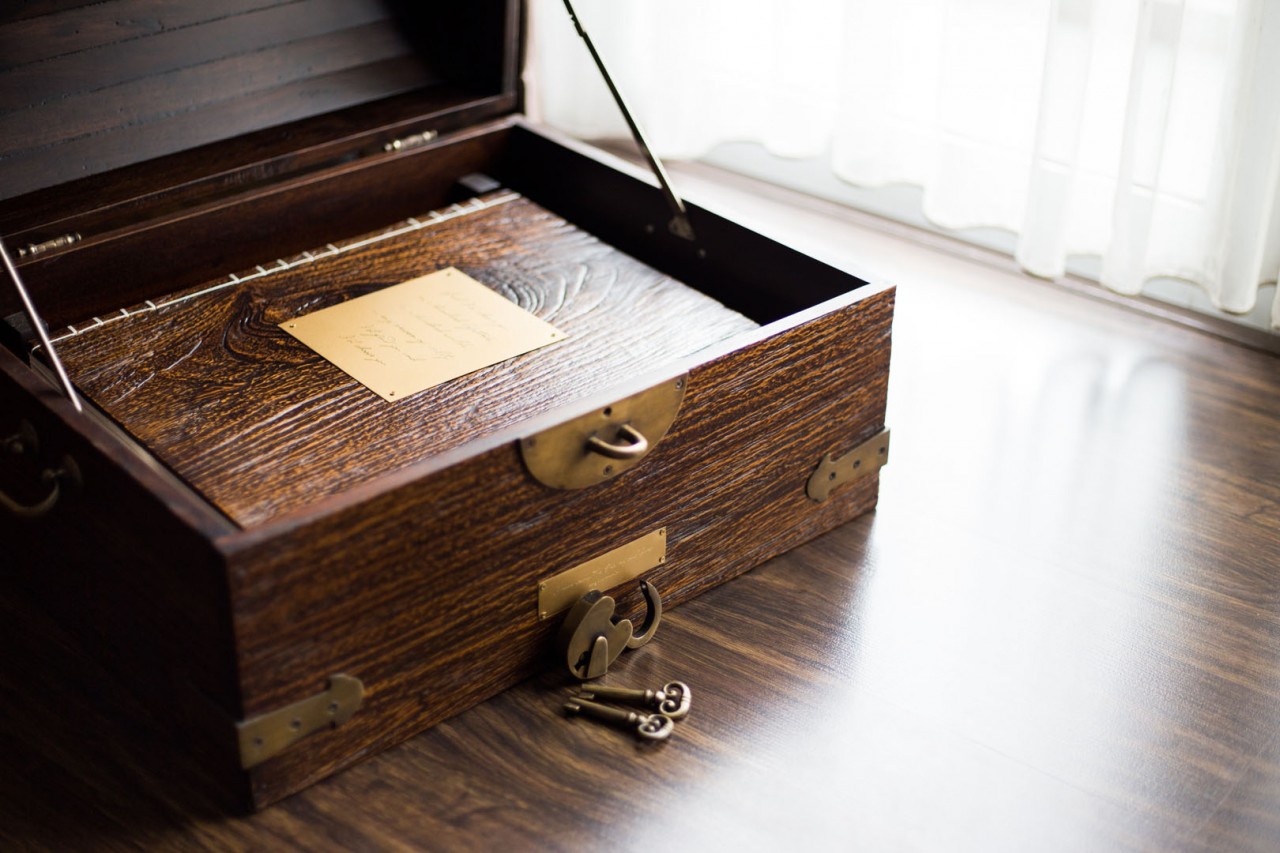 Steven and Ayumi have a very distinct taste in art. It’s no surprise that they were pretty specific when it came to designing their Lovebook, something that resembles a classic pirate’s treasure chest that they can display in their living room. Something that will make people question what it holds.