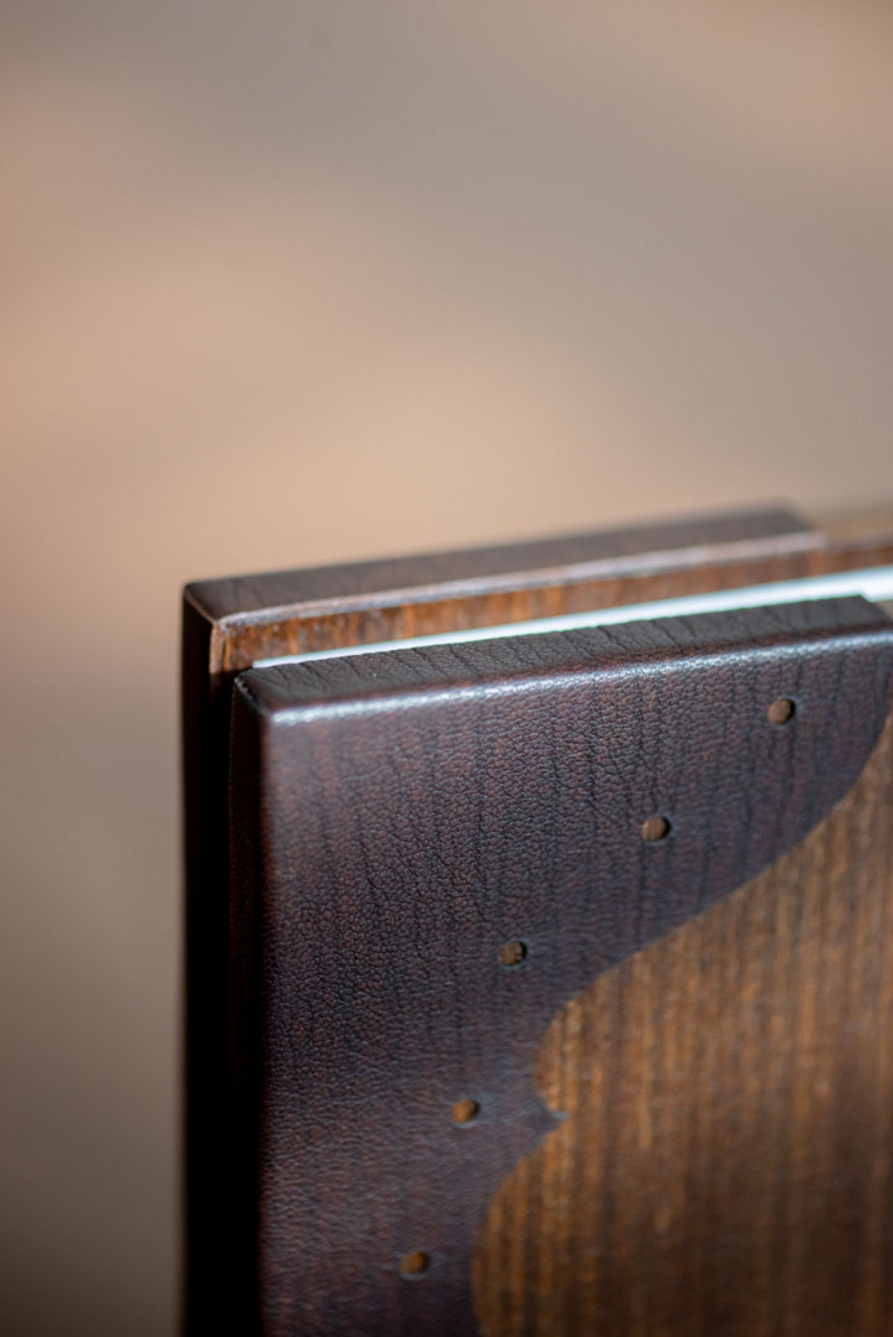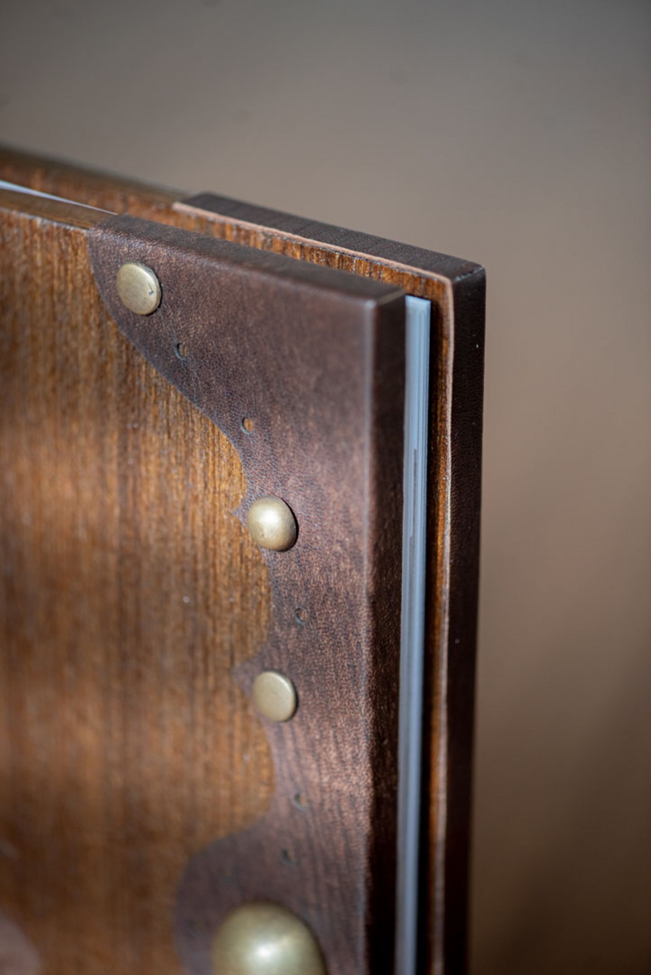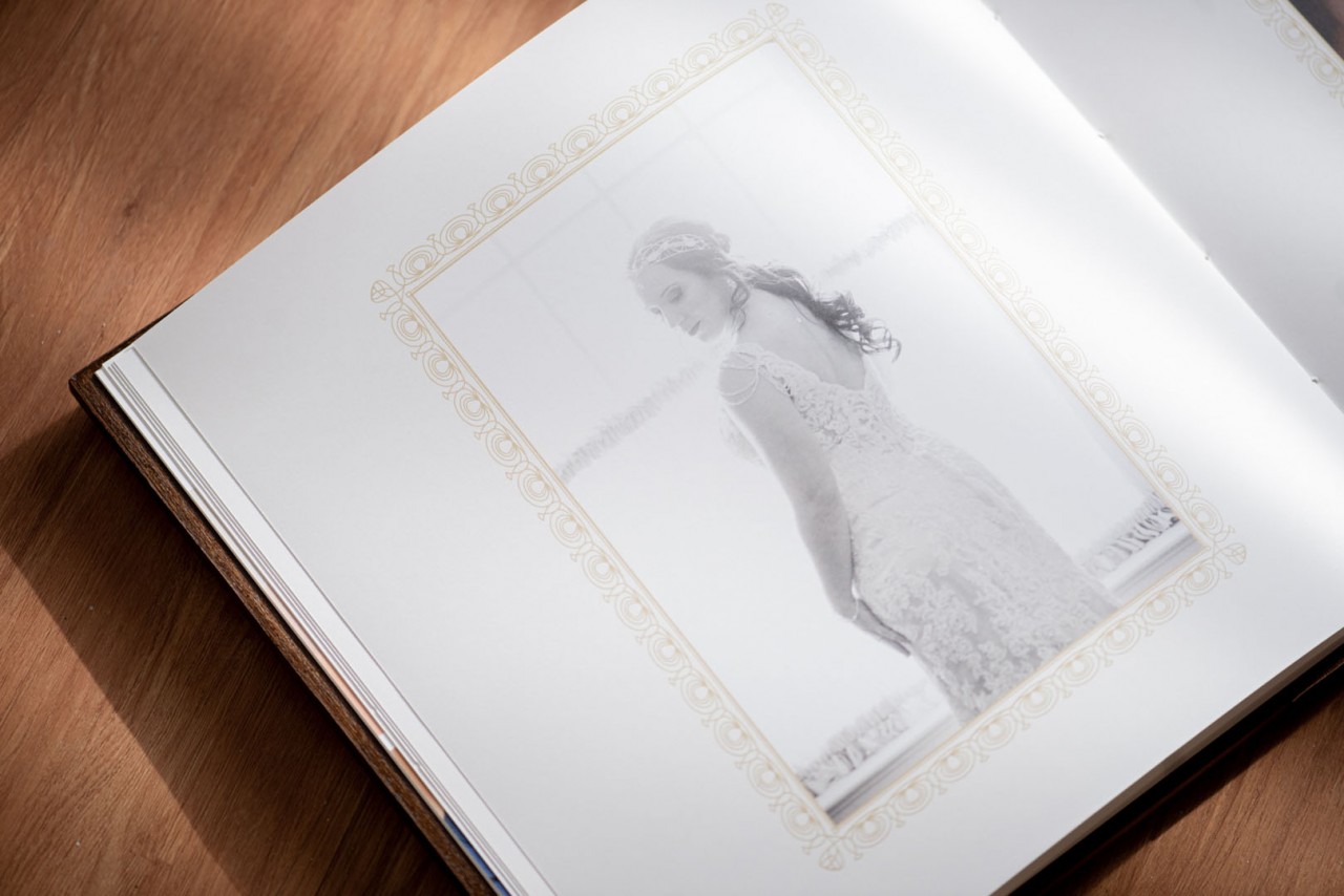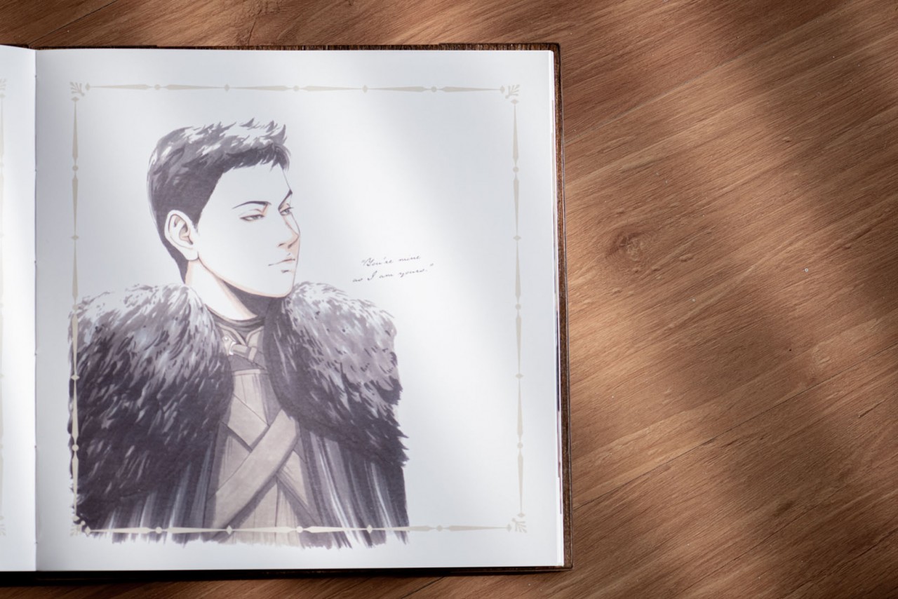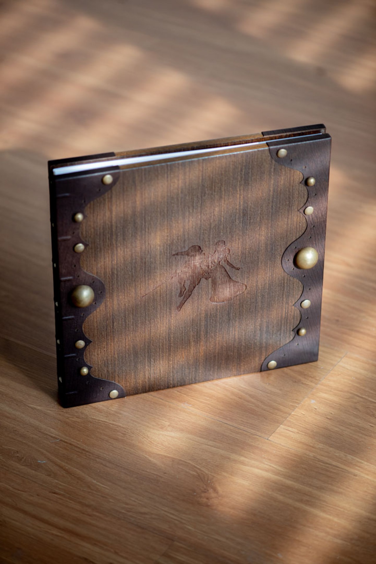 Ton and Melissa’s Lovebook looks like it’s straight out of a Game of Thrones episode or a Harry Potter sequel. Shades of dark browns decorated with brass studs embroidered the covers of the Lovebook. In front of it was an engraved illustration from Zelda; mimicking their cake topper on their big day. Finally, we pasted a laser cut genuine leather on the sides of the covers to carry on the old world theme.