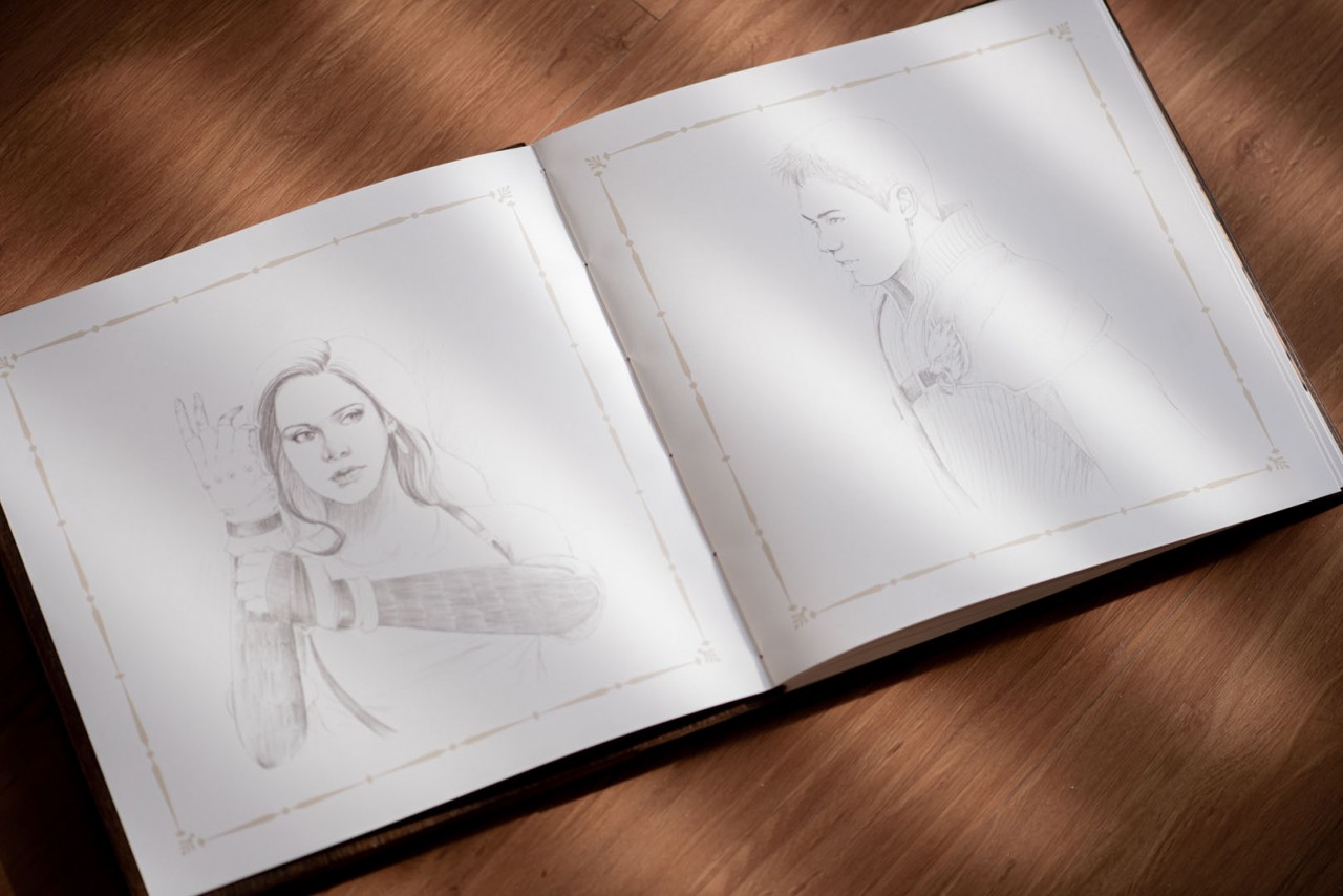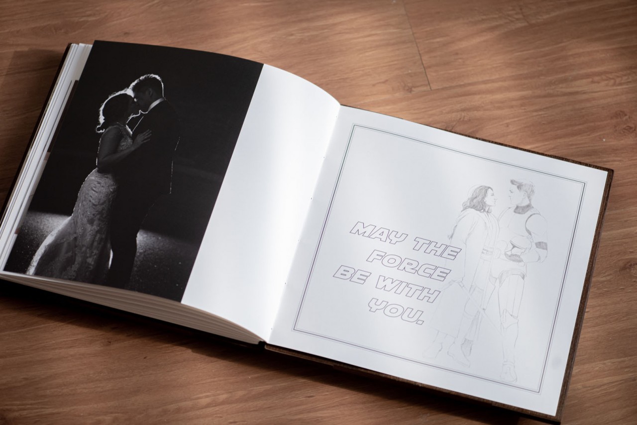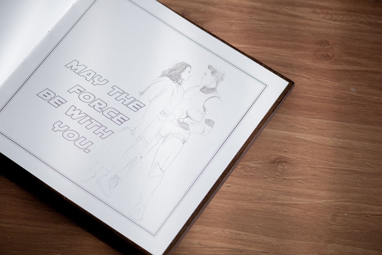 The inside of the Lovebook is filled with illustrations of them dressed up in their favorite characters’ get up. From the characters of Star Wars, to Captain Marvel! They named it, we drew it in the concept art sketches as requested by Ton and Melissa.