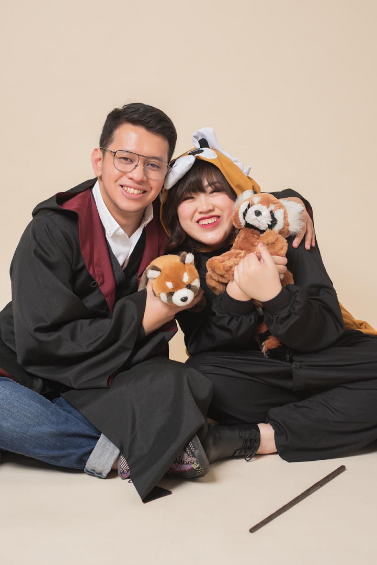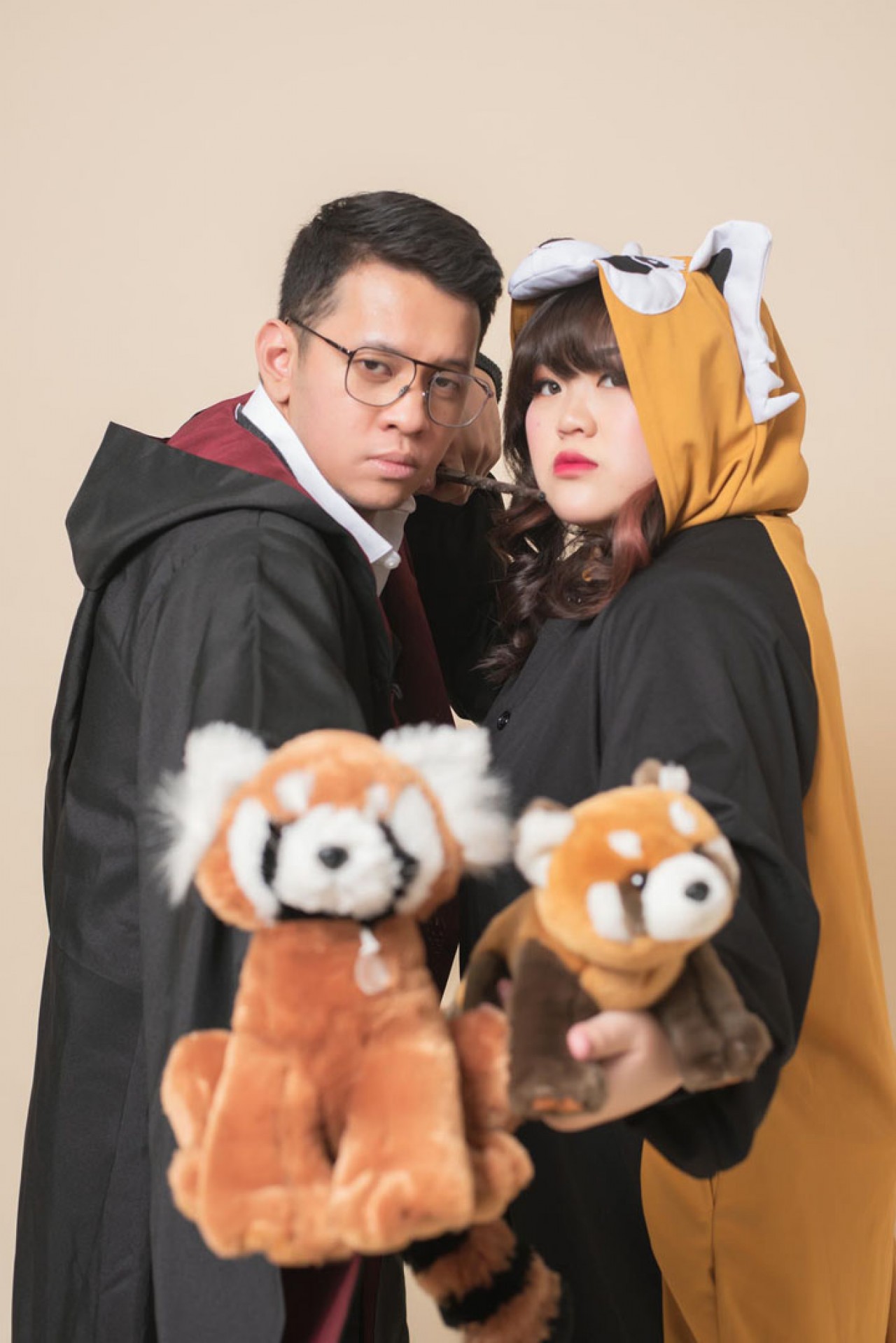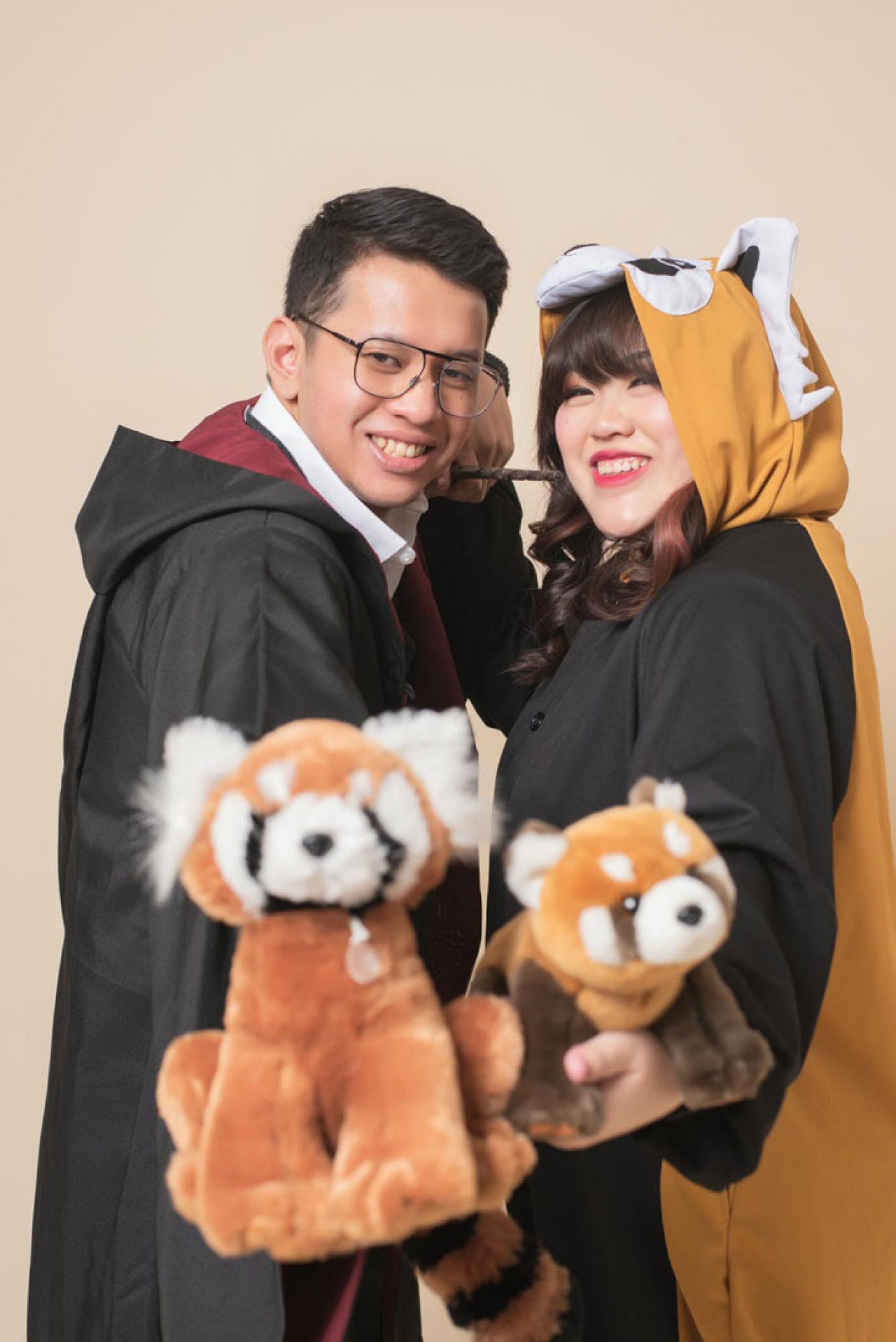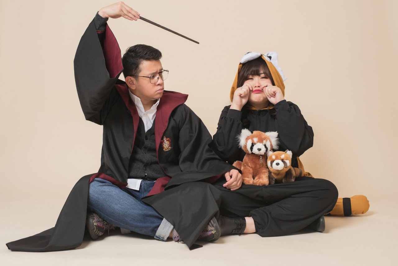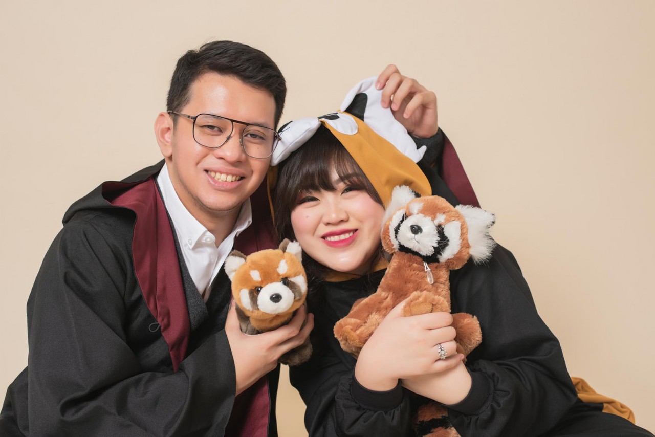 Especially during their pre wedding shoot with the Kairos team. Every single moment during the four hour session was just pure madness – in a good way of course. There was no stopping them in just being themselves. The expressiveness of the couple is just out of control. They even dressed up as Harry Potter to show us how “magical” they can be as a couple. Did I mention that Rica even “accidentally” turned Reza into a raccoon in one of the shot? Now that’s an unforgettable moment! Fortunately, she knew the magic spell to get Reza back to being the humorous and adorable man he is – or maybe for Rica both Reza the man and Reza the raccoon are equally cute. There was so much laughter that even the photographers have a hard time concentrating on the photos shoot. Their fun crazy is contagious! No matter which team Kairos team member had a chance to deal with them, we always left the room a little crazier and happier.